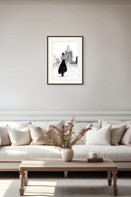 Be inspired and enlivened by this gorgeous, feminine art print of a woman celebrating her new beginnings by dancing joyously in the streets of Florence. The Florence Wall Art captures the free-spirited beauty of this historic city. This black and white photo of a woman unabashedly celebrating herself speaks to the independent and creative soul.